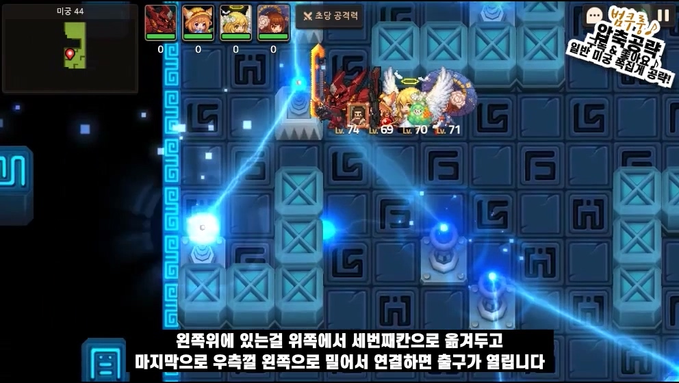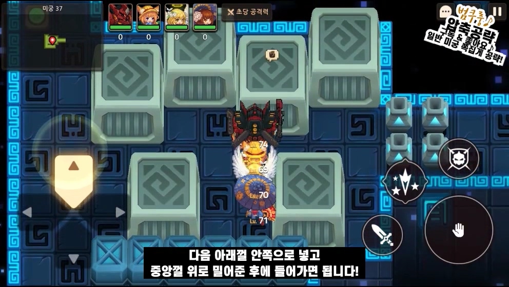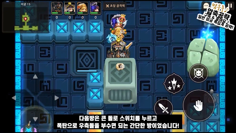 일단 첫 방은 맨 윗돌을 두칸 밀어주시고