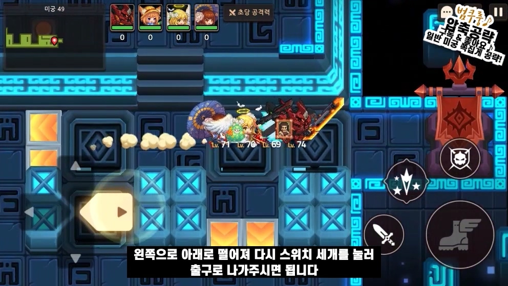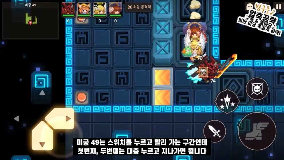 미궁 49는 스위치를 누르고 빨리 가는 구간인데