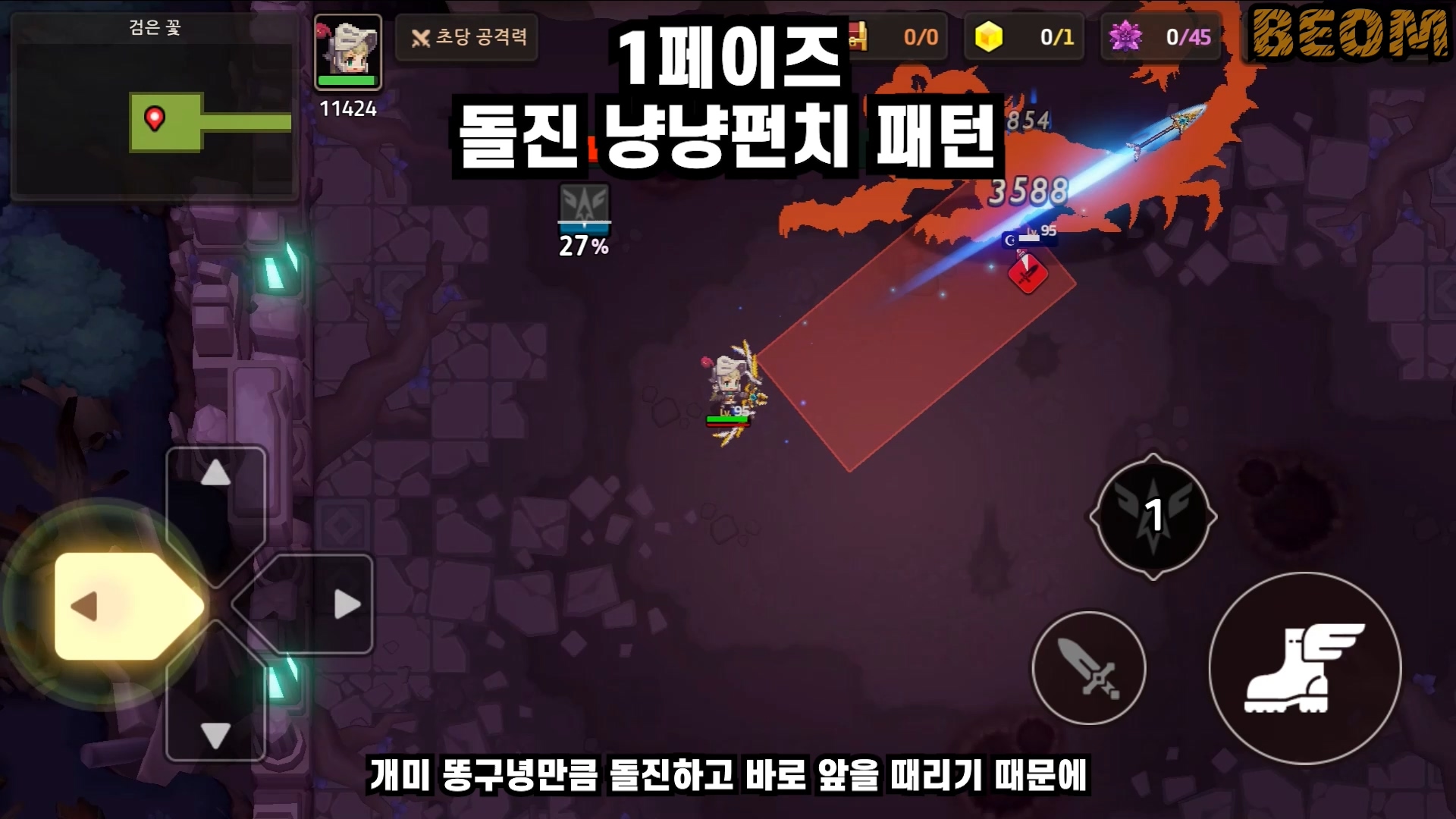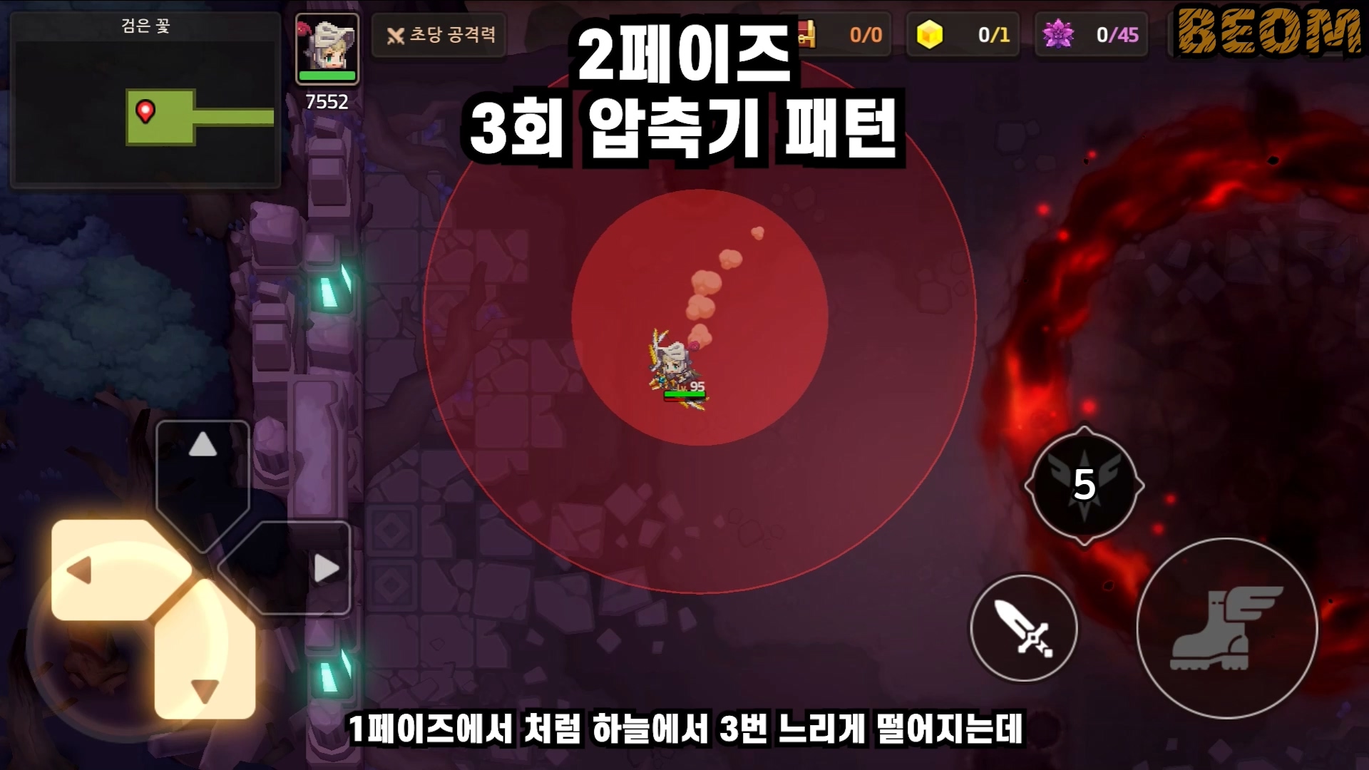 패턴2 - 3회 연속 압축기 패턴은 하늘에서 3번 떨어지는데요. 느리다 느리다 이렇게 느릴 수 있나 싶을정도의 게이지 속도로 차고 떨어지기 때문에 17월드까지 온 마당에 못 피할 수 없는 패턴입니다.
