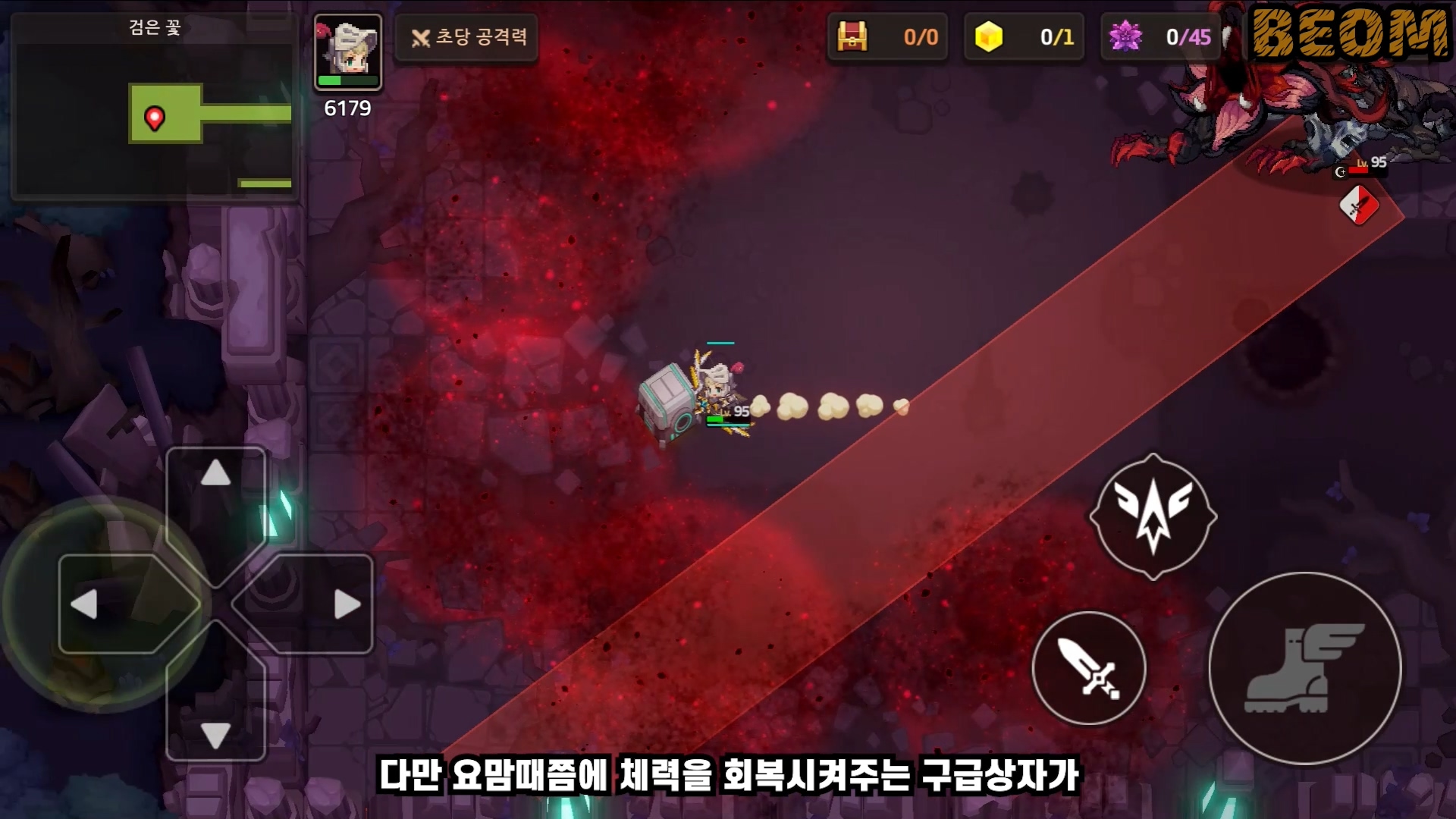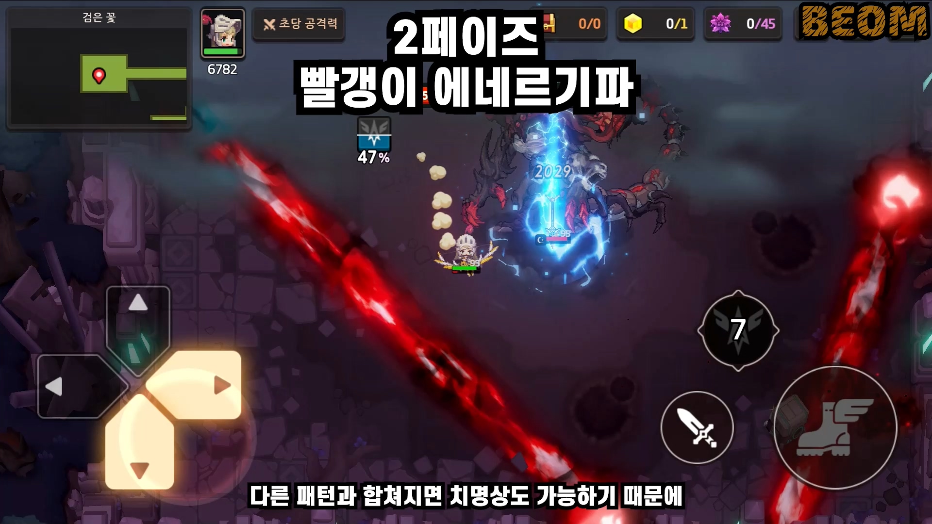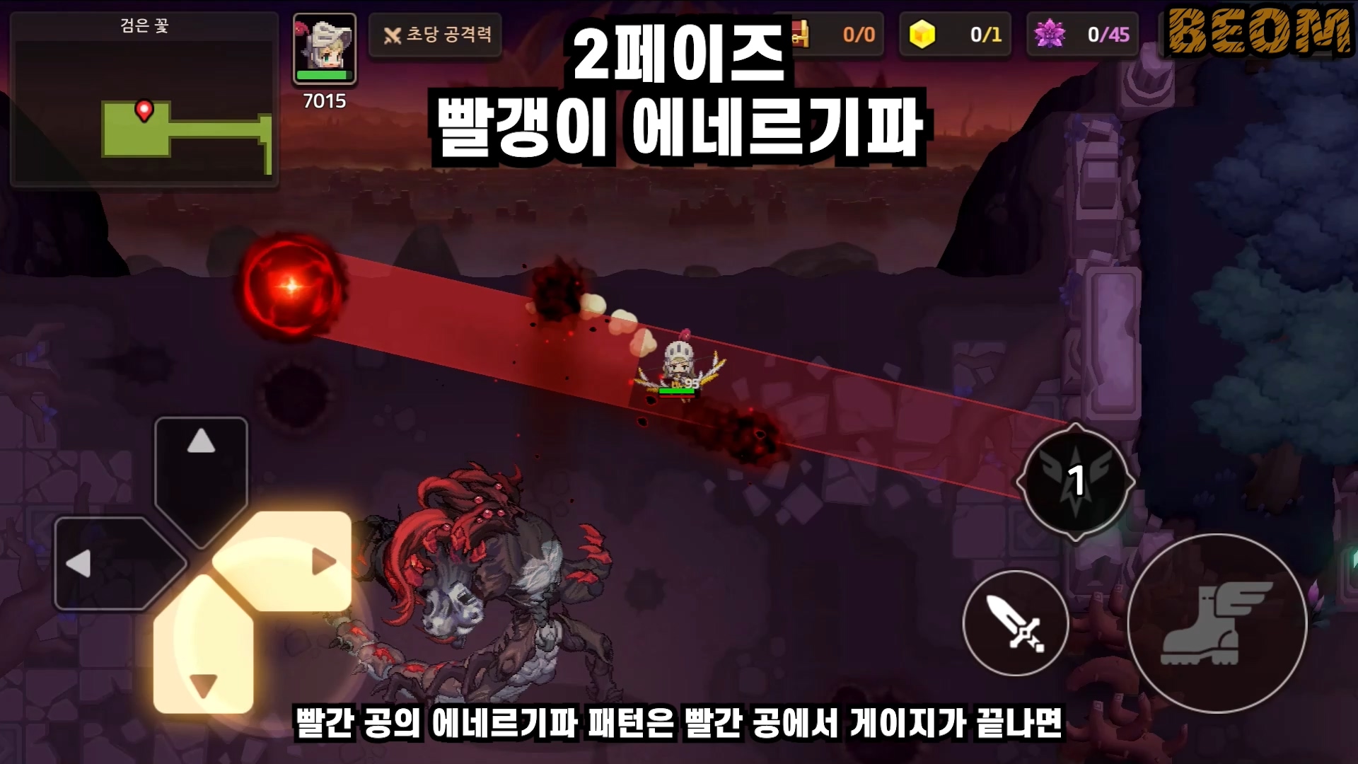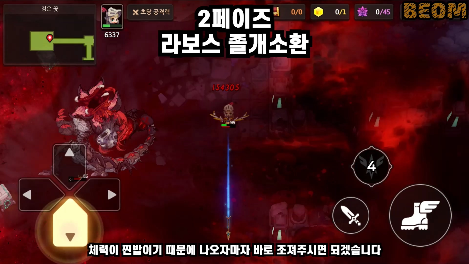 추가 패턴4 - 라보스 소환 패턴은 꽃에서 라보스 졸개들이 소환됩니다. 이 졸개놈들을 빨리 안 잡으면 바닥이 생성되니까 빨리 잡아야하는데 체력이 찐밥이기 때문에 나오자마자 바로 조져주시면 되겠습니다.