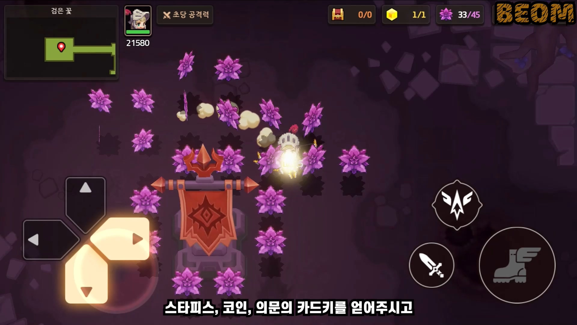 이제부터 계속 위의 패턴들의 반복인데 어느정도 패턴이 있는 보스이긴 한데 그렇다고 스펙업에 영향을 받는 보스도 아니고 패턴이 어렵지도 않으니까 보스 잘 잡아주시고 다시 들어와서 스타피스, 코인, 의문의 카드키를 얻어주시고 17월드를 마무리 하겠습니다.